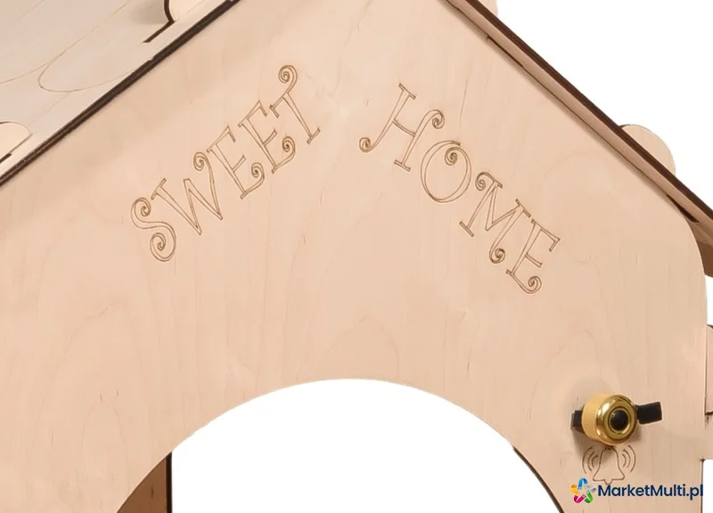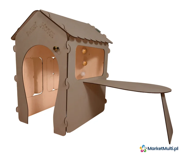 Aktywny Domek "SWEET HOME" wyposażony w tablicę magnetyczno- kredową (wymiar tabl.: szer.:55 x wys.: 86 cm) oraz stolik (dł: 76cm, szer.: 45 cm) do własnego montażu. Wyposażenie: komplet literek magnetycznych, 4 szt. cottonów, białą kredę oraz gąbkę. Zestaw nie zawiera baterii (2 szt. AA).