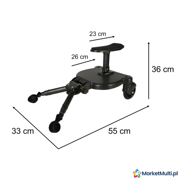 Czarna dostawka do wózka z siedziskiem: