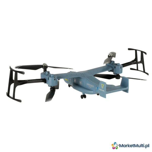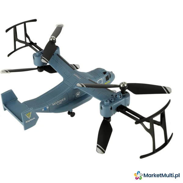 Dron V22 marki SYMA to fantastyczny produkt dla fanów modeli zdalnie sterowanych. Swoim wyglądem przypomina samolot, przez co wyróżnia spośród innych modeli. Dron jest zasilany akumulatorem, którego czas ładowania wynosi około 60 min. W zestawie znajdują się zapasowe śmigła, osłony śmigieł oraz kontroler na baterie. Zabawa dronem doskonale rozwija zdolności manualne oraz koordynację wzrokowo-ruchową.