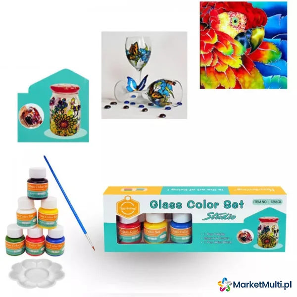 Zestaw farb do szkła- 6 żywych, półkryjących kolorów, każdy po 25 ml