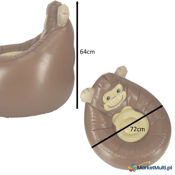 Uroczy fotel dla dziecka, który będzie nie tylko doskonałym miejsce do relaksu, ale również ciekawym dodatkiem do dziecięcego pokoju. Intrygująca grafika z małpką sprawi, że Twoje dziecko chętniej usiądzie przy biurku. Fotel można używać zarówno w domu, jak i na podwórku – dziecko zasługuje na chwilę komfortu w każdym miejscu. Po spuszczeniu powietrza, fotel zajmuje mało miejsca, dzięki z łatwością go schowasz. W zestawie łatka naprawcza na wypadek drobnego uszkodzenia.