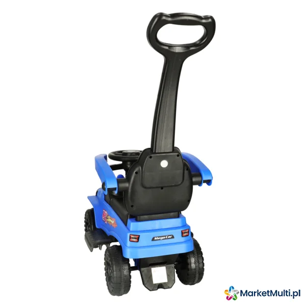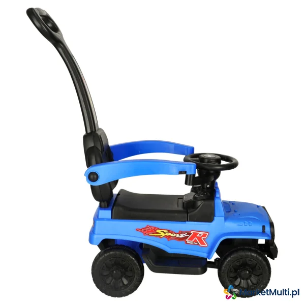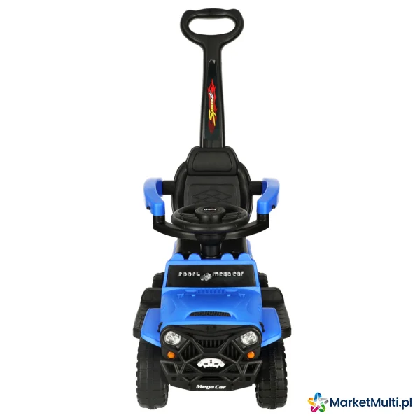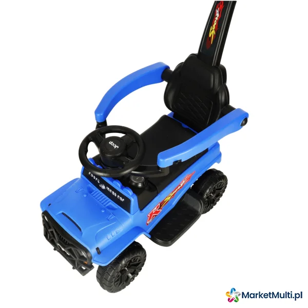 Niebieski jeździk przypominający samochód terenowy to zabawka, która zapewnia godzin fantastycznej rozrywki! Będzie towarzyszyć Wam podczas wspólnych spacerów – dzięki oparciu i barierkom maluch może wygodnie rozsiąść się, podczas gdy Ty będziesz pchać auto. A gdy dziecko podrośnie, możesz szybko przekształcić zabawkę w samochód do samodzielnej jazdy. Odpychając się nóżkami, maluch poczuje się jak prawdziwy kierowca! Efekty dźwiękowe i świetlne dostarczą wspaniałych wrażeń podczas każdej podróży.