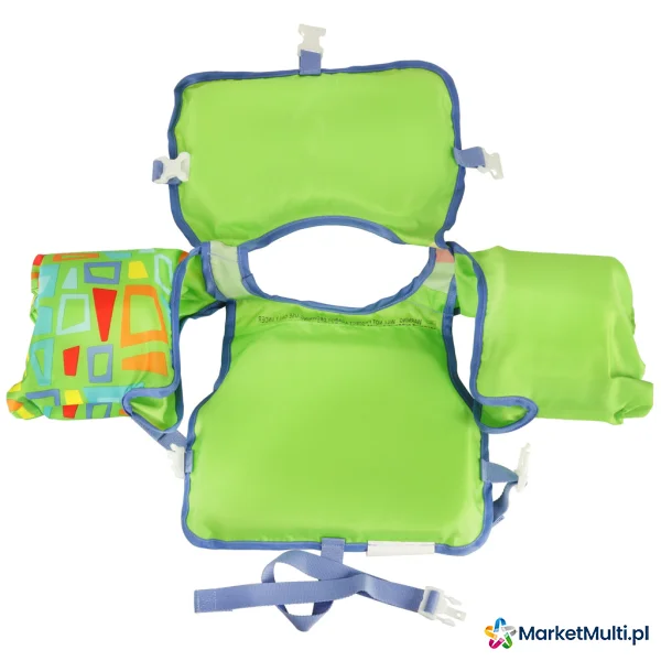 Piankowe wypełnienie kamizelki gwarantuje doskonałą wyporność, a dzięki przymocowanym rękawkom obszytym miękkim materiałem, dziecko bez problemu utrzymuje się na powierzchni wody. Regulowane zapięcie na klamry zapewnia idealne dopasowanie do sylwetki malucha, zapewniając mu komfort podczas zabawy. Kamizelka wyróżnia się wyrazistym, zielonym kolorem i ciekawym wzorem, które przyciągają wzrok i sprawiają, że dziecko jest widoczne nawet z daleka.