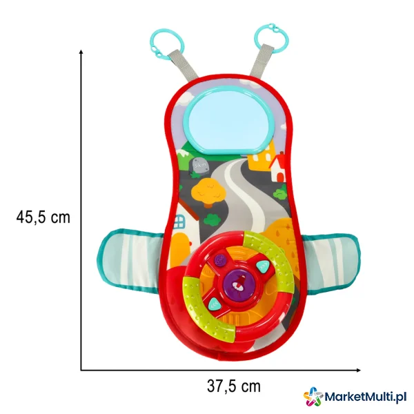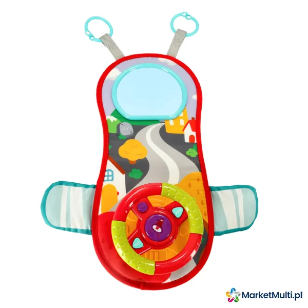 Interaktywna kierownica to prawdziwa gratka dla małych odkrywców. Kolorowa mata z lusterkiem i kierownica z klaksonem oraz kierunkowskazami tworzą niepowtarzalną atmosferę jazdy prawdziwym samochodem. Realistyczne dźwięki przeniosą Twoje dziecko w świat pełen przygód!