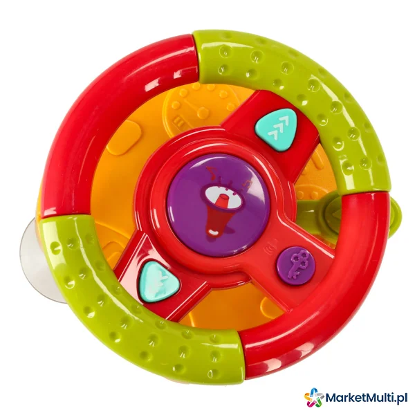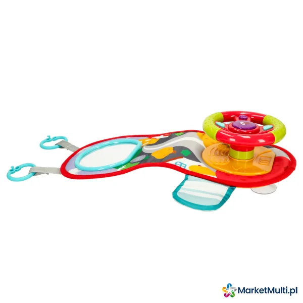 Praktyczne przyssawki i elementy mocujące umożliwiają zawieszenie kierownicy na wózku, fotelu samochodowym lub zamocowaniu na ścianie lub stoliku. Z nią każda podróż samochodem będzie bardziej interesująca!