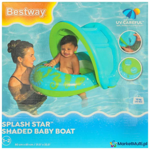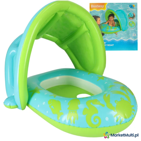 BESTWAY 34091 KÓŁKO DO PŁYWANIA DLA NIEMOWLĄT KOŁO PONTONIK DLA DZIECI DMUCHANY Z SIEDZISKIEM Z DASZKIEM ZIELONY 1-2LATA 18KG