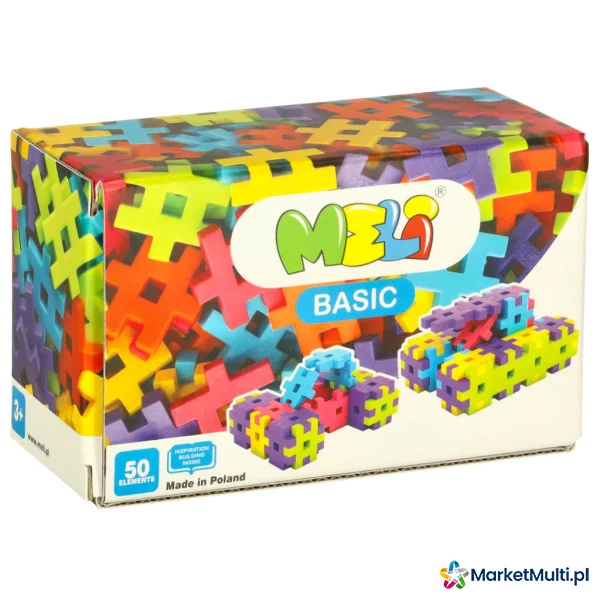 Opakowanie skrywa 50 sztuk nowatorskich klocków przeznaczonych do twórczej zabawy. Można z nich tworzyć dowolne kształty według własnego pomysłu, a łatwa obsługa polegająca na łączeniu elementów zachęca do zabawy. Kształt puzzli oraz bogata kolorystyka przyciągnie uwagę dzieci. Zbyt duża liczba elementów na początkowym etapie może nieco rozproszyć dziecko, dlatego na początek zabawy z kreatywnymi klockami MELI proponujemy opakowanie zawierające 50 genialnych elementów. Wykorzystaliście do zabawy wszystkie? Mamy dla Was dobrą wiadomość - serię BASIC można, dowolnie łączyć pomnażając radość z zabawy!