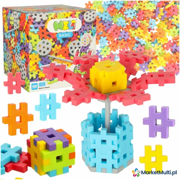 Odpowiednio dobrane do wieku i rozwoju dziecka zabawki, nie tylko sprawiają radość, ale również gwarantują jego intelektualny rozwój. Zestaw edukacyjnych klocków MELI CONSTRUCTOR 400 to aż 370 podstawowych, płaskich elementów do budowania, uzupełnionych o 30 elementów do zadań specjalnych. Koła, osie i sześciokąty pomogą w zmaterializowaniu modeli aut, robotów czy np. śmigłowca! Szukasz zestawu dla rodzeństwa? Harmonijny dobór kolorów zyska akceptację każdego dziecka. Nie zastanawiaj się dłużej – taki prezent to zapewni dziecku radość tworzenia na długie godziny!