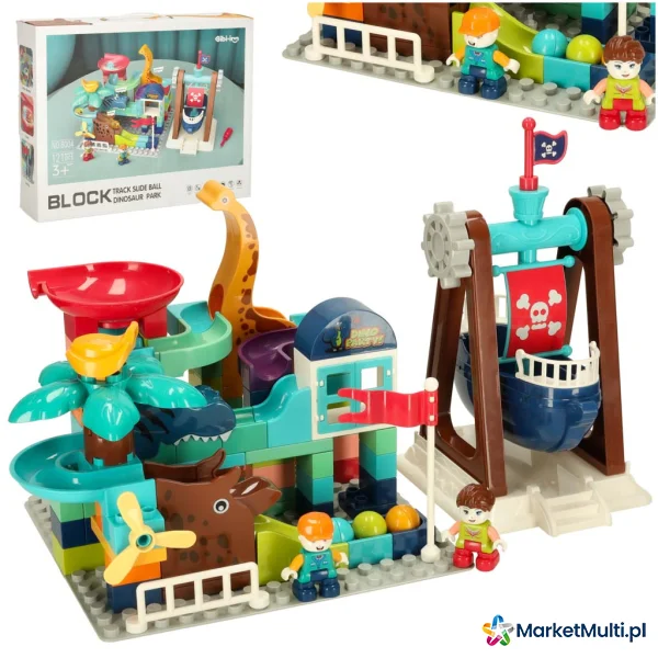 Zestaw składa się z 113 klocków, z których dziecko może zbudować własny tor kulkowy! Elementy można dowolnie łączyć, tworząc samodzielnie wymyślone trasy dla kulek, lub zaczerpnąć inspirację z pudełka i zbudować tor jak ze zdjęcia. Do zestawu dołączone są trzy kulki w różnych kolorach, które będą toczyć się po stworzonych torach.