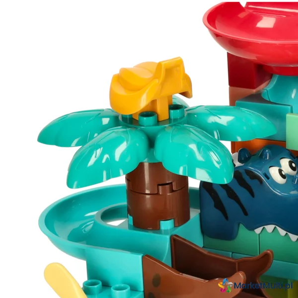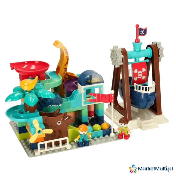 W zestawie znajduje się również port ze statkiem, który dodaje zabawce intrygującego akcentu morskiego i zapewnia dodatkowe możliwości zabawy. Dziecko może wyobrazić sobie, że ich kulkowy tor prowadzi przez egzotyczne park, a statek transportuje niezbędne elementy do budowy.
