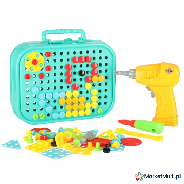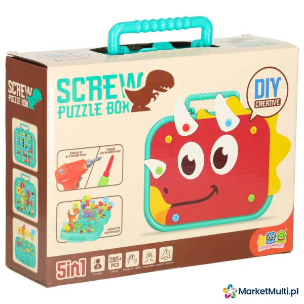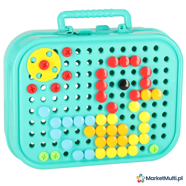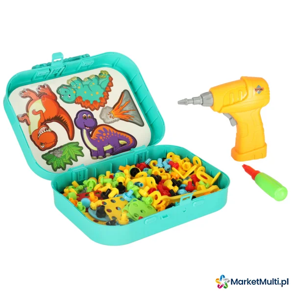 KLOCKI KONSTRUKCYJNE UKŁADANKA W WALIZCE KREATYWNA MOZAIKA + WKRĘTARKA DINOZAUR