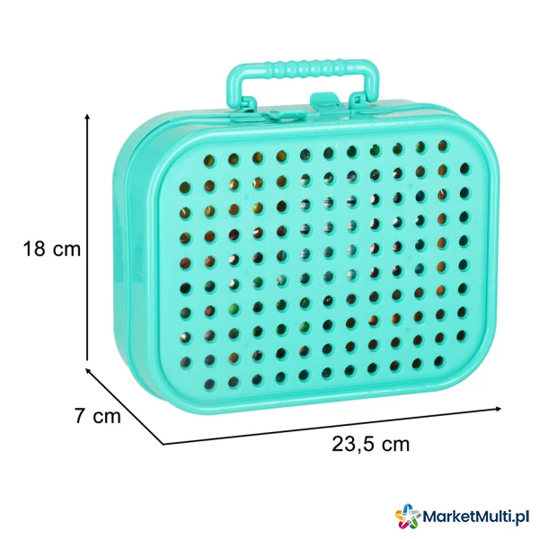 Wymiary plastikowej walizki: 23,5 cm x 18 cm x 7 cm