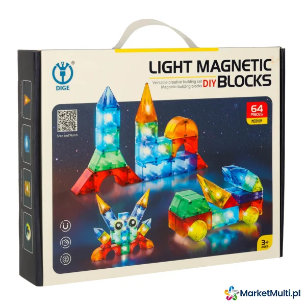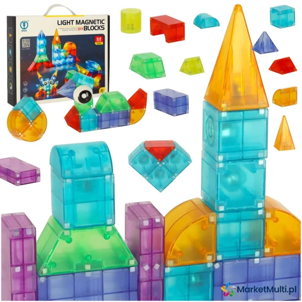 KLOCKI MAGNETYCZNE ŚWIECĄCE 64 EL.