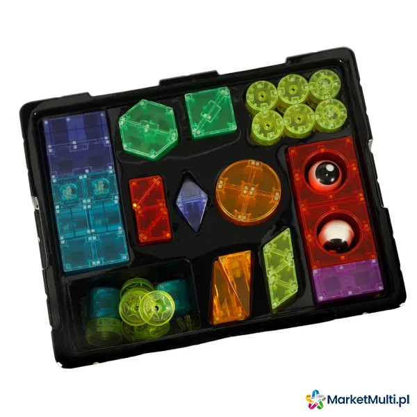 Klocki w różnych kształtach i kolorach dają dziecku możliwość tworzenia wielu konstrukcji – od prostych wież po bardziej skomplikowane figury 3D. Dzięki wbudowanym magnesom budowanie z klocków jest łatwe i przyjemne. Świecące elementy sprawiają, że każda konstrukcja wygląda imponująco, szczególnie w ciemności.