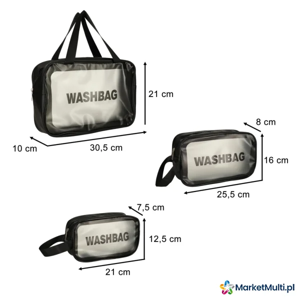 Trzy praktyczne kosmetyczki przydadzą Ci się podczas każdej podróży! Każda z kosmetyczek jest wykonana wodoszczelnego materiału doskonałej jakości, dzięki czemu masz pewność, że zarówno Twoje kosmetyki, jak i reszta bagażu będą bezpieczne. Kosmetyczki są w różnych rozmiarach, ale każda z nich jest zamykana na suwak i posiada praktyczny uchwyt. Zestaw może służyć również do przechowywania innych przedmiotów.