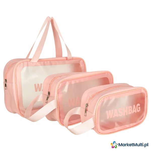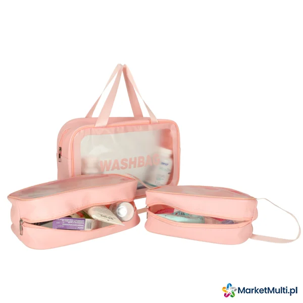 KOSMETYCZKA ZESTAW ORGANIZERY DO WALIZKI 3 SZTUKI PRZEZROCZYSTE RÓŻOWE