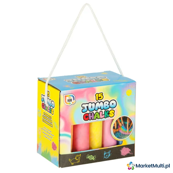 GRUBA KREDA CHODNIKOWA 15 SZT W ROZMIARZE JUMBO W PUDEŁKU Z UCHWYTEM DO PRZENOSZENIA