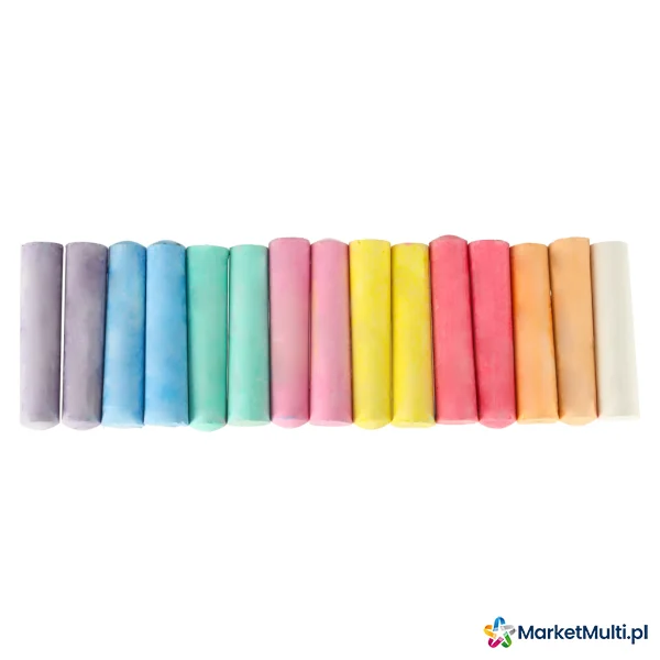 15 szt. kolorowej kredy w 8 kolorach - czerwonym, zielonym, białym, fioletowym, żółtym, niebieskim, pomarańczowym i różowym