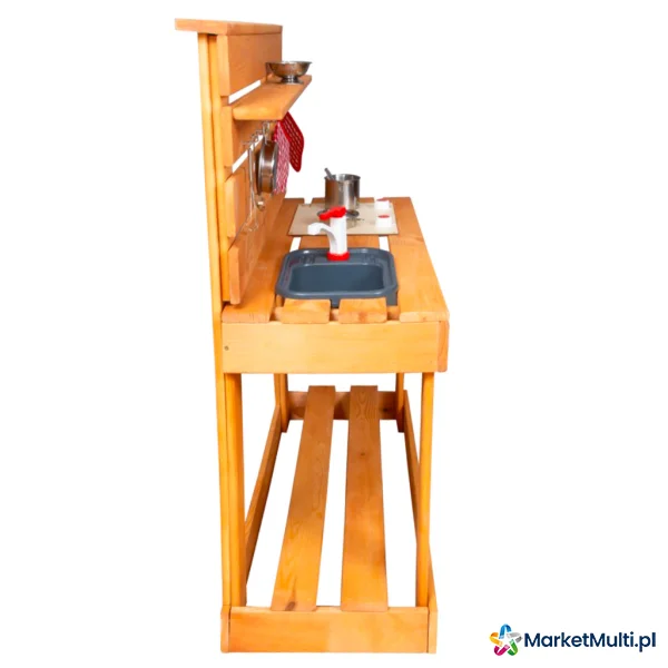 Drewniana kuchnia ogrodowa stanie się centrum rozrywki na Twoim podwórku! Mieszając piasek, wodę i wykorzystując rośliny z ogródka, dziecko wcieli się w kucharza, który nie boi się eksperymentować. Zabawa kuchnią doskonale rozwija zdolności motoryczne oraz kreatywność dziecka.