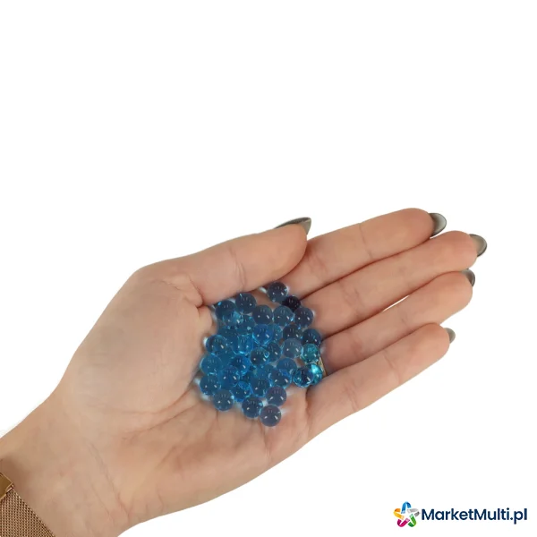 Zestaw kulek hydrożelowych do pistoletów na kulki, do nawadniania roślin lub do projektów DIY. W opakowaniu znajduje się 550 niebieskich kulek gotowych do użycia. Mają średnicę 7-8 milimetrów.