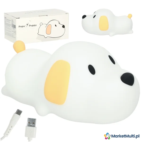 LAMPKA NOCNA DLA DZIECI SILIKONOWA NA BATERIE USB BIAŁA PIESEK LEŻĄCY