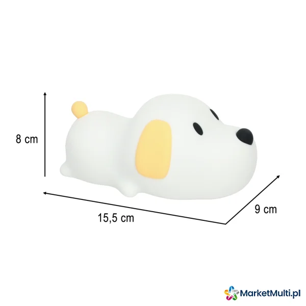 Silikonowa lampka nocna w kształcie pieska to uroczy dodatek wnętrza, ale także funkcjonalne oświetlenie, które zapewni delikatne światło dla Twojego dziecka bojącego się ciemności.