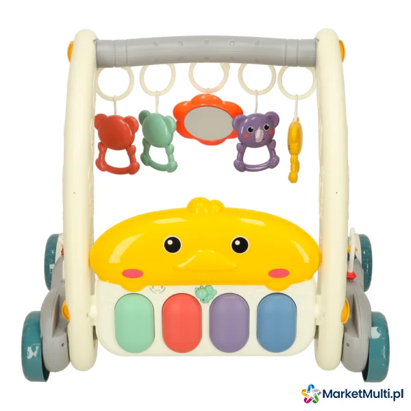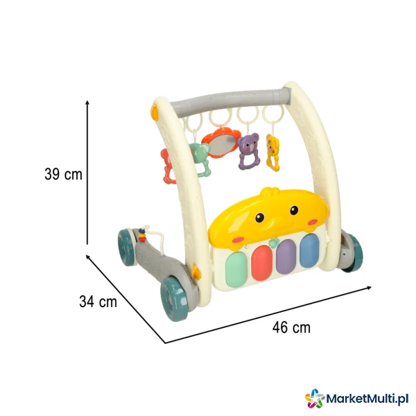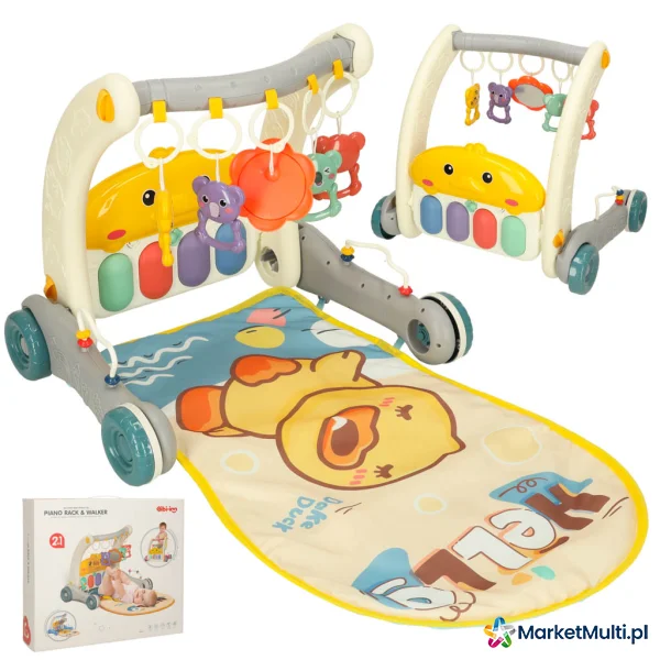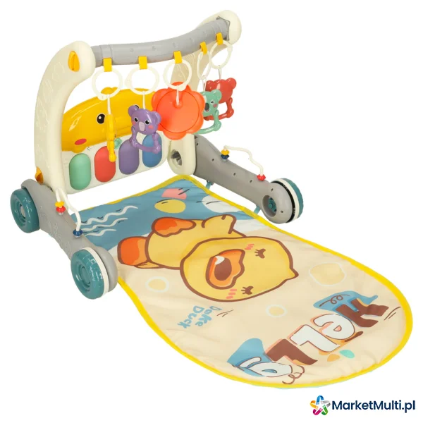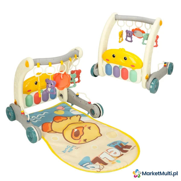 Produkt rośnie razem z Twoim dzieckiem. Na początku, gdy maluch leży na brzuszku, może bawić się kolorowymi zawieszkami i słuchać dźwięków pianinka. Gdy przyjdzie czas na pierwsze kroki, wystarczy przekształcić matę w stabilny chodzik, który zapewni bezpieczeństwo i pewność podczas nauki chodzenia.