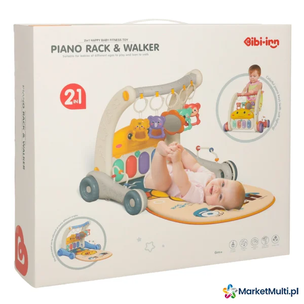 MATA EDUKACYJNA CHODZIK PCHACZ Z PIANINKIEM 2W1 BIBI-INN SZARY