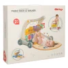 Pianinko z dwoma trybami działania i regulacją głośności zapewni rozrywkę na długie godziny. Miłe melodie i dźwięki pobudzają zmysły dziecka i rozwijają jego słuch. Kolorowe zawieszki stymulują zmysł dotyku i wzroku, rozwijając koordynację ręka-oko.