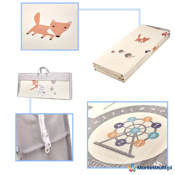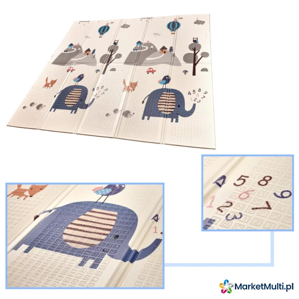 Piankowa mata edukacyjna doskonale sprawdzi się do wyznaczenia miejsca do zabawy, ale także jako dywan w pokoju dziecka. Jest dwustronna – z jednej strony jest pagórki oraz zwierzęta, a z drugiej kręte uliczki idealne do zabawy ulubionymi samochodzikami. Grubość maty wynosząca 1 centymetr zapewnia nie tylko wygodne miejsce do zabawy, ale także ochroni przed zimną podłogą i sprawia, że nauka chodzenia jest bezpieczniejsza. Mata jest wyjątkowo praktyczna – łatwo ją składać i rozkładać, dzięki czemu zajmuje minimalną przestrzeń, kiedy nie jest używana.