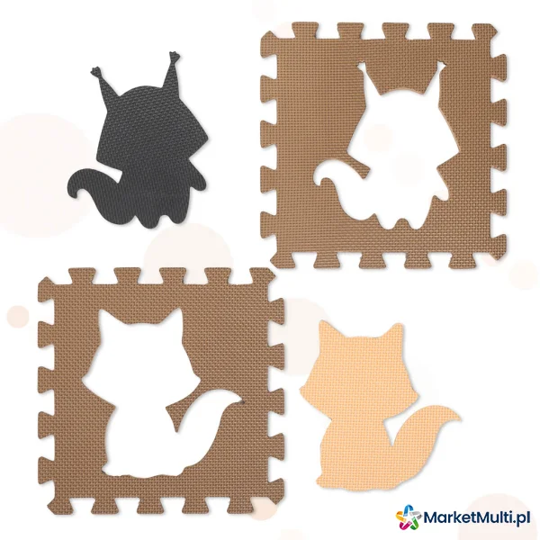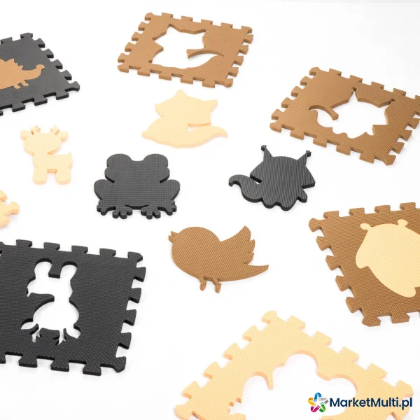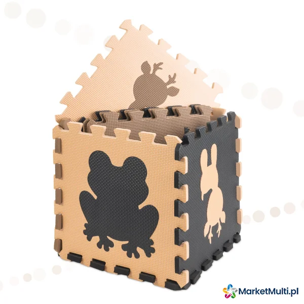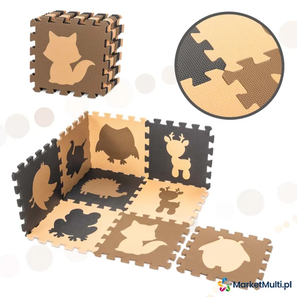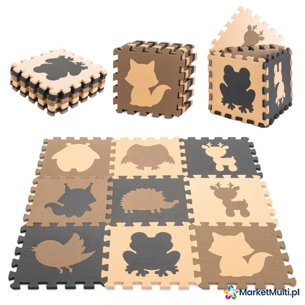 MATA EDUKACYJNA PIANKOWA PUZZLE ZWIERZĄTKA BEŻOWA 85 X 85 CM 9 ELEMENTÓW