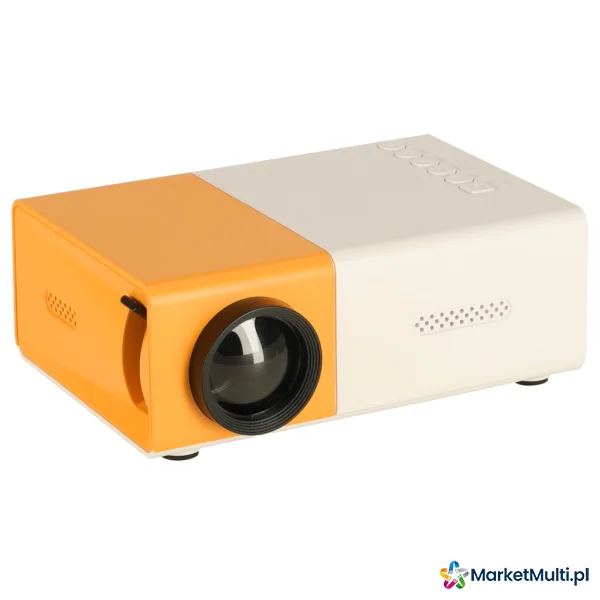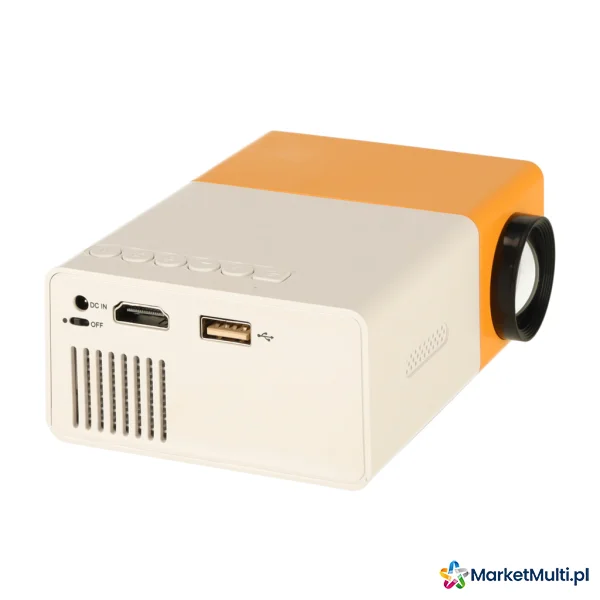 MINI PROJEKTOR RZUTNIK PRZENOŚNY LED TFT LCD 1920X1080 24-60" USB HDMI 12V BIAŁO-POMARAŃCZOWY