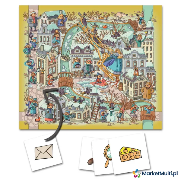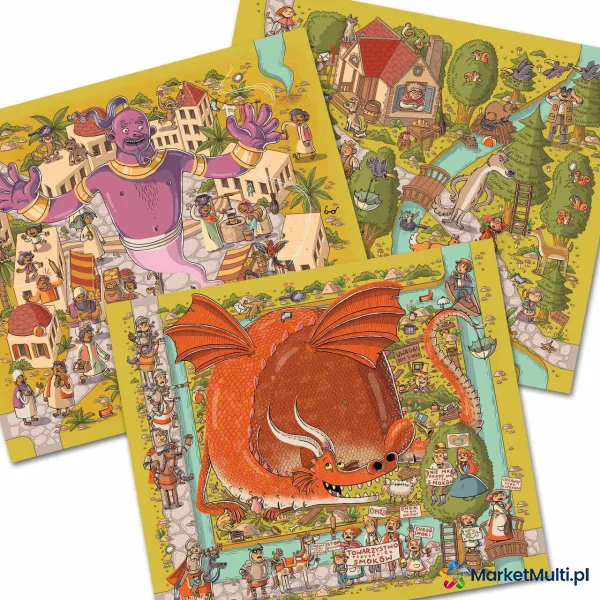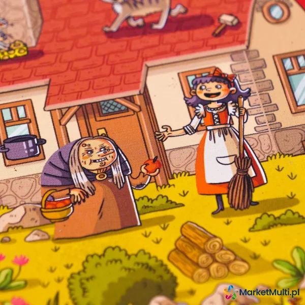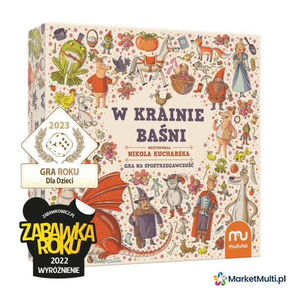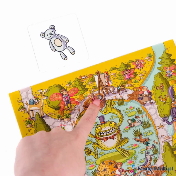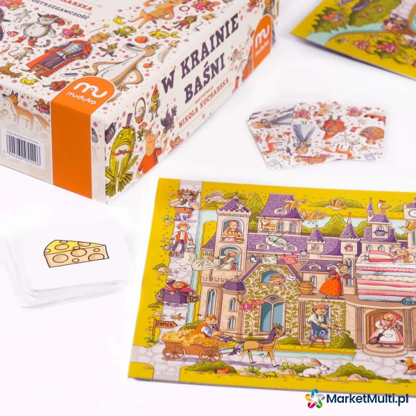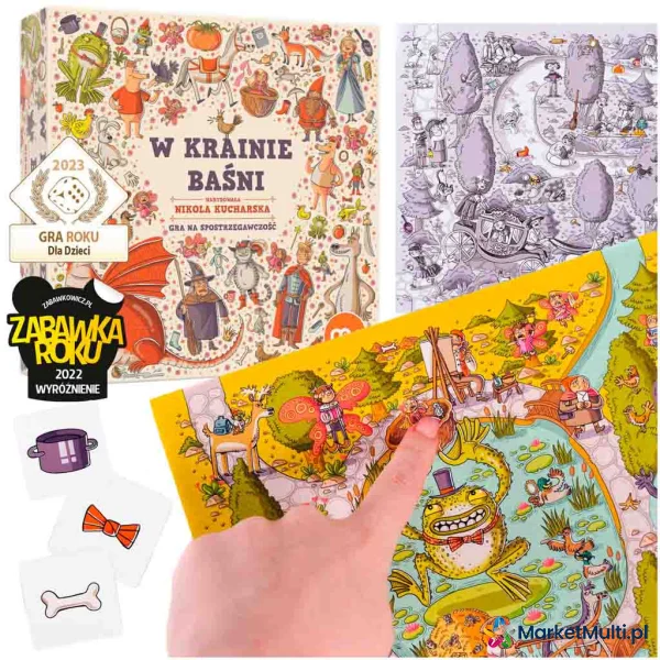 Każda plansza reprezentuje inną baśń. Gracze będą wytężać wzrok na rzece, w której rybak odnalazł Złotą Rybkę, pod opasłym cielskiem Smoka Wawelskiego, w stawie, po którym pływa Brzydkie Kaczątko czy w domkach Trzech Świnek. Ta rodzinna gra na spostrzegawczość zachwyca przepięknymi ilustracjami znanej i lubianej Nikoli Kucharskiej. Kilka trybów rozgrywki zapewni wszystkim członkom rodziny dużo dobrej zabawy przez wiele godzin.