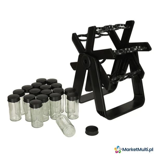 Stojak na przyprawy pozwoli Ci zachować porządek pośród wielu opakowań przypraw. Z pomocą 18 szklanych pojemników z zakręcanymi wieczkami i stabilnemu stojakowi wszystkie Twoje ulubione przyprawy będziesz mieć zawsze pod ręką, dzięki czemu gotowanie pysznych potraw będzie dużo łatwiejsze. Dzięki nowoczesnemu wyglądowi, stojak będzie się pięknie prezentować na blacie kuchennym.