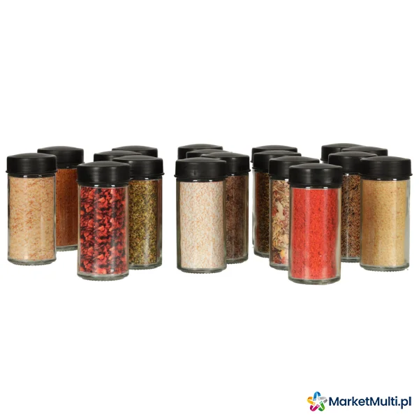 W zestawie 18 zakręcanych pojemników ze szkła.