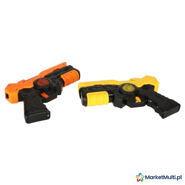 Pistolety mają zasięg do 15 metrów, co umożliwia zabawę zarówno w domu, jak i na świeżym powietrzu, gwarantując dynamiczną rozrywkę i pełną swobodę ruchu. Każdy ruch wymaga celności, szybkości i refleksu, co wspomaga rozwój małej motoryki, poprawia koordynację ruchową oraz zwiększa szybkość reakcji dziecka, czyniąc tę grę nie tylko zabawą, ale i świetnym treningiem sprawności.