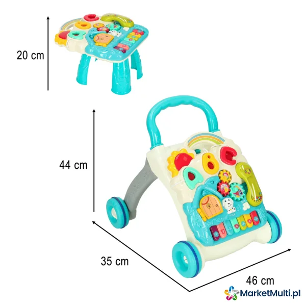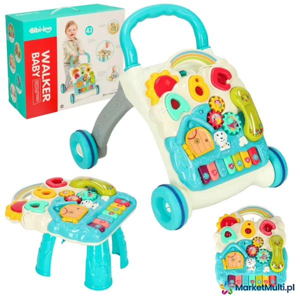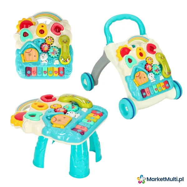 cztery produkty w jednym – elementy zestaw można wymieniać, przekształcając produkt z tablicę manipulacyjną, stolik edukacyjny lub praktyczny chodzik