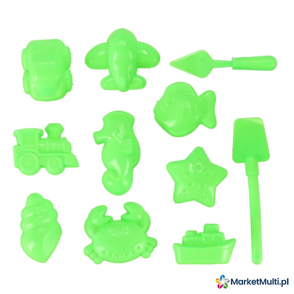 Zestaw zawiera 16 plastikowych foremek, które umożliwiają tworzenie różnych kształtów i wzorów z piasku. Foremki są łatwe w użyciu i dodają elementów konkretnej struktury do twoich tworzeń.