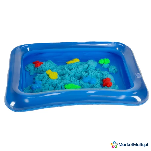 Piasek Kinetyczny niebieski w pudełku 1kg foremki piaskownica +8 foremek