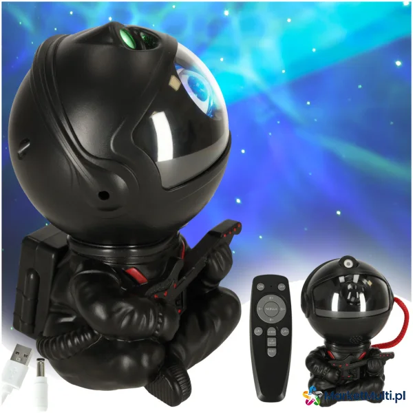 LAMPKA NOCNA DLA DZIECI PROJEKTOR GWIAZD ASTRONAUTA Z GITARĄ NA PILOTA