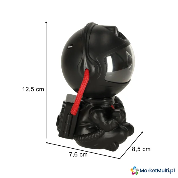Uroczy projektor gwiazd w formie astronauty to idealna propozycja dla każdego małego fana kosmosu, ale nie tylko – Ty też z pewnością też będziesz nim zachwycony! Projektor za pomocą jednego przycisku nadaje każdemu wnętrzu niepowtarzalnego klimatu. Po uruchomieniu astronauty na ścianach i suficie zaczynają się wyświetlać kolorowe gwiazdy. Obracając głowę astronauty, możesz dostosowywać kąt padania gwiazd. Produkt doskonale sprawdzi się też w roli lampki nocnej, w szczególności dla dzieci, które boją się ciemności. W zestawie znajdziesz pilot, który ułatwia obsługę urządzenia.