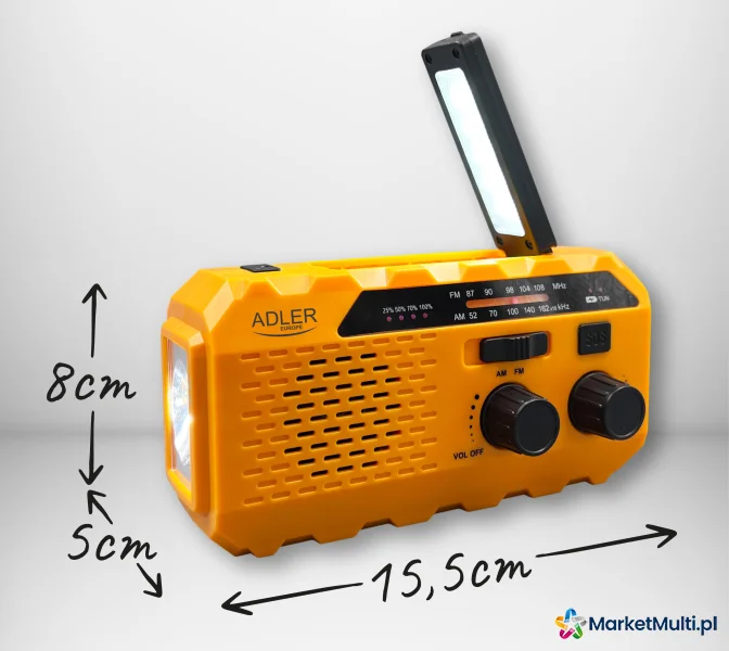 Niewielkie, przenośne Radio z latarką i funkcją ładowania AD 1179, które doskonale sprawdza się zarówno w miejscu pracy, jak i w domu. Radio jest zasilane wbudowanym akumulatorem 1200mAh. Pojemna bateria pozwala na ciągłe odtwarzanie ulubionej muzyki przez aż 8 godzin. Wbudowana latarka wyposażona w supermocną diodę LED jest nieocenionym towarzyszem w sytuacjach, gdy potrzebujesz niezawodnego źródła światła. Dzięki niej zyskasz pewność i bezpieczeństwo nawet w ciemnościach. Radio może być zasilane na trzy różne sposoby - poprzez wbudowany akumulator, wydajny panel solarny lub ręcznie, korzystając z mechanizmu ładowania korbką. Jasny wskaźnik poziomu naładowania baterii (25%, 50%, 70%, 100%) pozwala na precyzyjne monitorowanie stanu energii, dzięki czemu zawsze będziesz wiedzieć, kiedy warto przeprowadzić kolejne ładowanie. Dzięki wbudowanemu porcie USB, masz możliwość ładowania innych urządzeń, takich jak smartfony czy tablety, zapewniając im dodatkowy zastrzyk energii w podróży. W sytuacjach awaryjnych radio może stać się twoim sprzymierzeńcem. Funkcja SOS Alarm pozwala na uruchomienie alarmu dźwiękowego i świetlnego, co może być niezwykle pomocne w przypadku niebezpieczeństwa lub nagłych sytuacji.