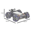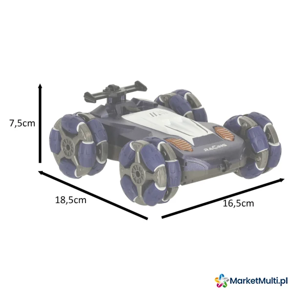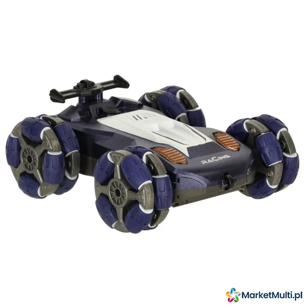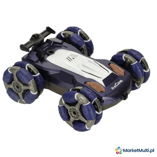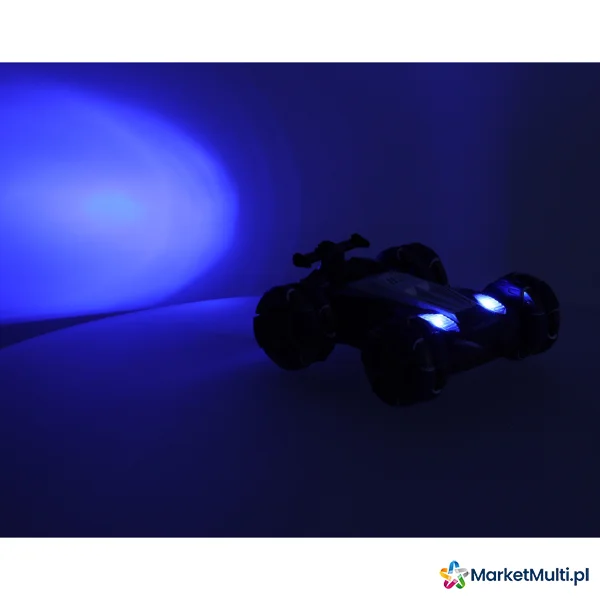 Samochód porusza się w czterech kierunkach, co sprawia, że jest w stanie pokonać nawet najbardziej kręte trasy. Podwójne koła nie tylko nadają pojazdowi nowoczesny i stylowy wygląd, ale również zapewniają doskonałą przyczepność na różnych nawierzchniach. Lampy oraz wydech z efektem dymu (pary wodnej) sprawiają, że zabawa staje się jeszcze bardziej ekscytująca.