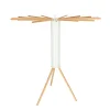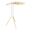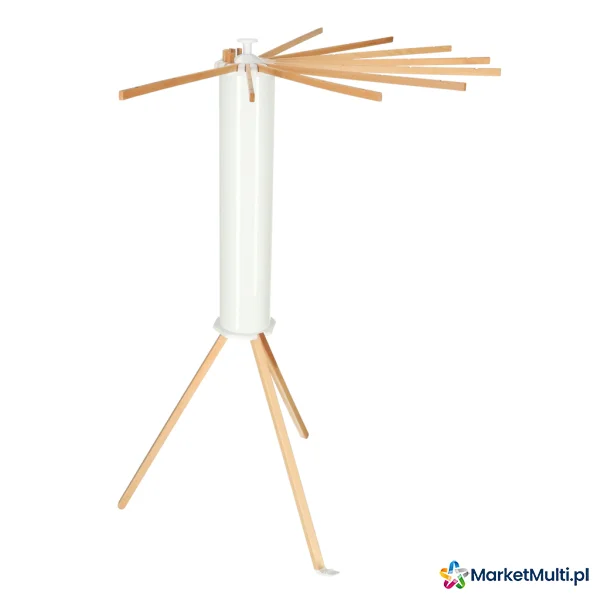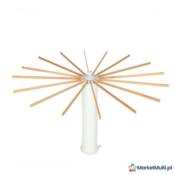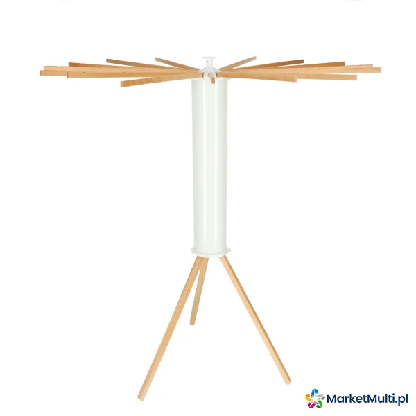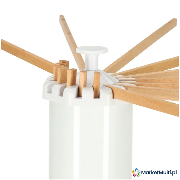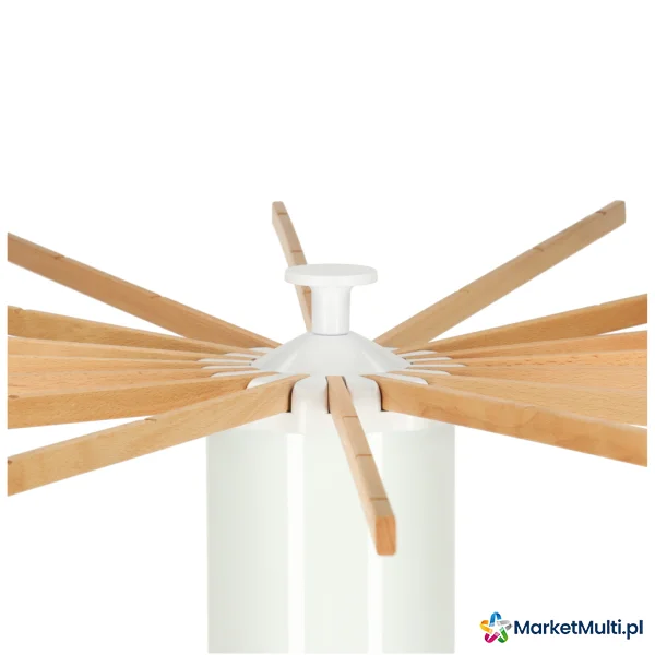 Wyposażona w 16 drewnianych ramion, suszarka ta oferuje dwa sposoby wieszania prania: na wieszakach lub bezpośrednio na ramionach. Ramiona rozmieszczone są wokół całej suszarki (360 stopni), zapewniając optymalną cyrkulację powietrza i równomierne schnięcie ubrań. Możliwość wysunięcia pojedynczych ramion pozwala na dostosowanie suszarki do potrzeb i dostępnej przestrzeni. Dzięki temu bez problemu możesz ją ustawić wzdłuż ściany lub w kącie pokoju, nawet w przypadku małych pomieszczeń lub balkonów z ograniczonym miejscem. Po złożeniu suszarka zajmuje niewiele miejsca, co ułatwia jej przechowywanie, gdy nie jest używana. Idealnie nadaje się zarówno do użytku w domu, jak i na zewnątrz.