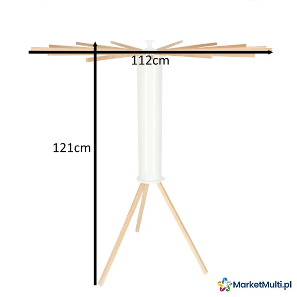 Wymiary rozłożonej suszarki: 112 cm x 112 cm x 121 cm