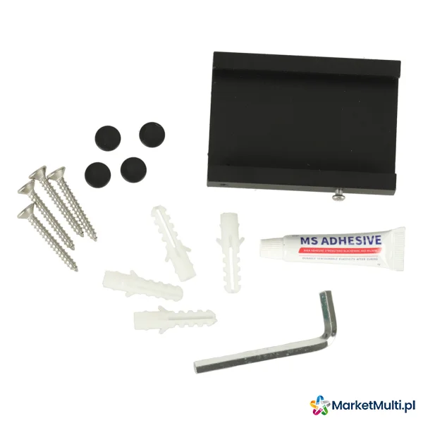 Suszarka wykonana jest z wytrzymałego aluminium w matowym, czarnym kolorze, co gwarantuje jej trwałość i estetyczny wygląd. Minimalistyczny design sprawia, że wpasuje się ona w każde wnętrze. Montaż suszarki jest prosty i szybki – możesz ją przymocować do ściany na dwa sposoby: tradycyjnie, za pomocą wkrętów lub przyklejając ją do ściany specjalnym klejem (wszystkie niezbędne elementy znajdują się w zestawie).