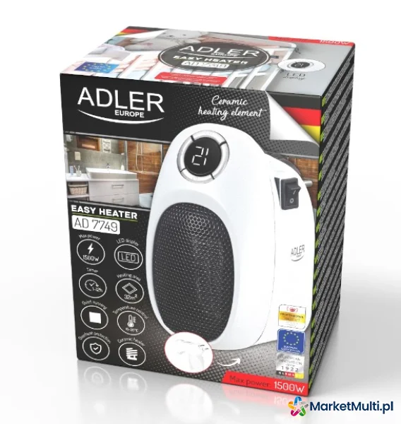 Podsumowując, Adler 7749 - Termowentylator - Easy Heater to doskonały wybór dla osób szukających przenośnego, wydajnego i bezpiecznego źródła ciepła. Jego niewielki rozmiar, programator czasu, regulowana temperatura oraz czytelny wyświetlacz LED to cechy, które przyciągną wszystkich, którzy cenią sobie wygodę i funkcjonalność w jednym urządzeniu.