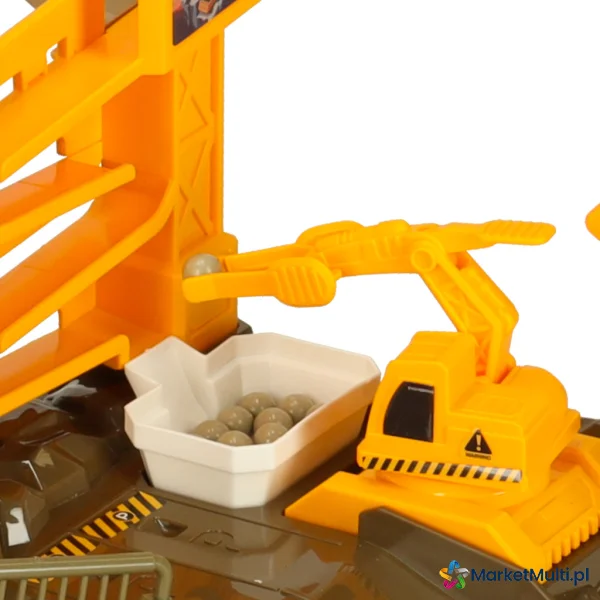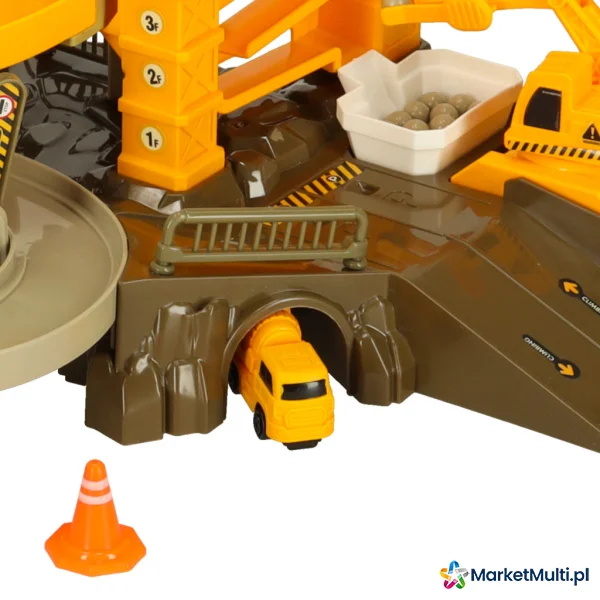 W zestawie znajdują się nie tylko auta, ale także inne elementy budowlane, w tym dźwig. Dzięki temu dziecko może w pełni wczuć się w rolę kierownika budowy, planując transport ładunków i kontrolując przebieg prac.