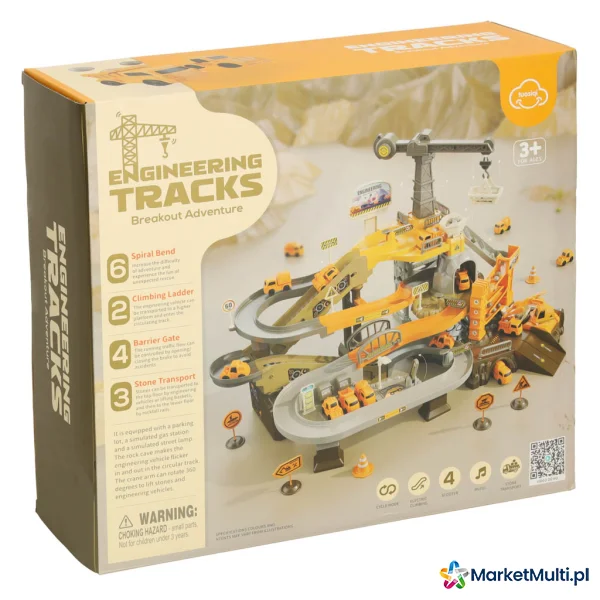 Wielopoziomowy tor samochodowy to wyjątkowa zabawka, która przeniesie dziecko w fascynujący świat budowy i transportu, pełen dynamicznych akcji i krętych dróg!