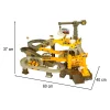 Wbudowane elementy elektryczne (zasilane bateriami) sprawiają, że pojazdy automatycznie poruszają się po torze, transportują ładunki z dołu na sam szczyt konstrukcji. Samochodziki płynnie i bez wysiłku pokonują kolejne poziomy, a następnie zjeżdżają na sam dół.